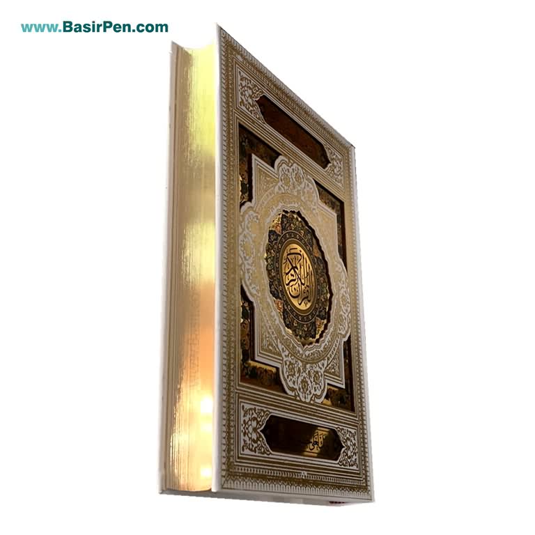 کتاب نفیس قرآن سفید (قرآن عروس) بصیردارای پلاک طلایی با چاپ تذهیب رنگی بسیار زیبا همراه با طلاکوب کاغذ گلاسه لبه طلا خط عثمان طه همراه با ترجمه فارسی و چاپ کاملا رنگی در قطع وزیری با طرح بسیار زیبا، هدیه کاملا نفیس و زیبا و مناسب جهت استفاده در مراسم عقد و ...