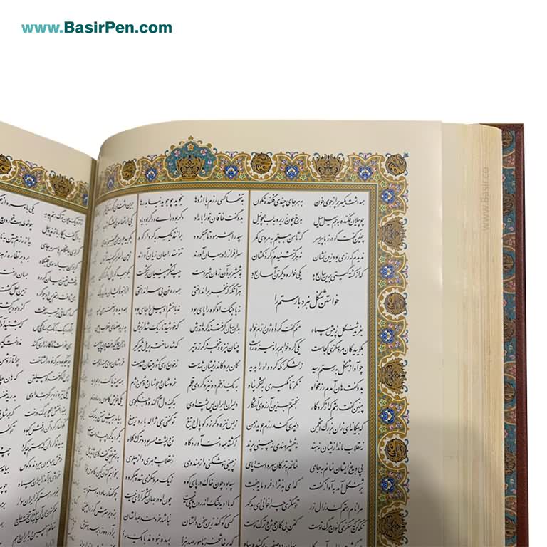 کتاب نفیس شاهنامه رنگی همراه با جعبه نفیس دارای پلاک رنگی بر روی جلد و قاب (جعبه)کاغذ گلاسه با چاپ کاملا رنگی در اندازه بزرگ سلطانی