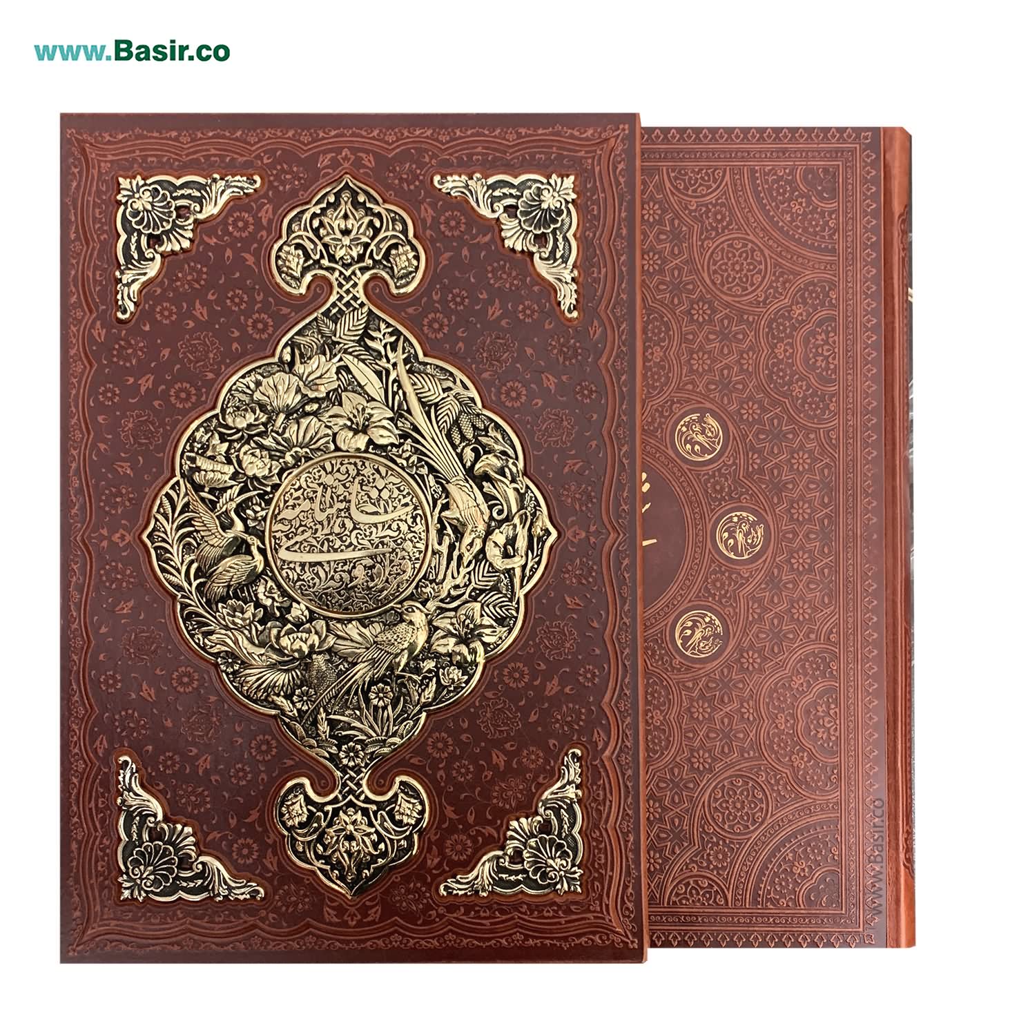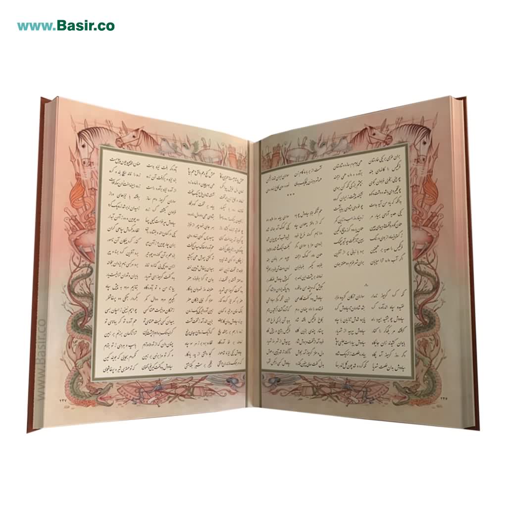کتاب نفیس شاهنامه چرمی طرح مس بسیار زیبا و نفیس همراه با قاب کشویی کاغذ گلاسه با چاپ کاملا رنگی و تذهیب زیبا