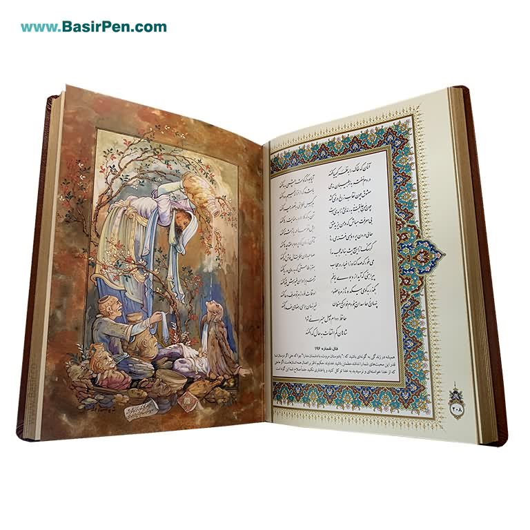 کتاب بسیار زیبا و نفیس دیوان حافظ چرمی بصیر همراه با جعبه (قاب بازشو) طرح برجسته با کیفیت عالی و کاغذ گلاسه و چاپ تمام رنگی بسیار زیبا این کتاب به صورت تک و یا در تعداد بالا با تخفیف های بسیار عالی و بهترین قیمت توسط این مرکز (انتشارات نوین بصیر) توزیع می گردد.