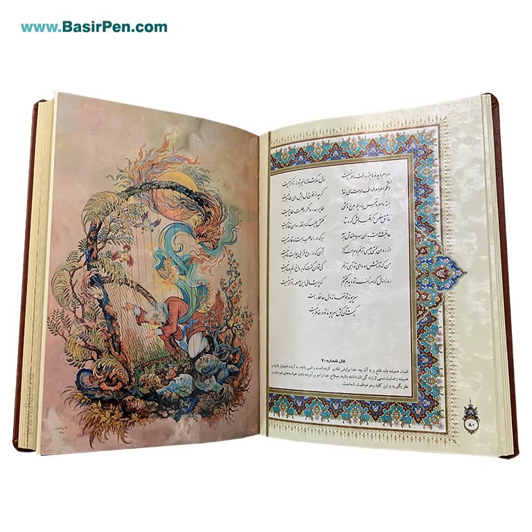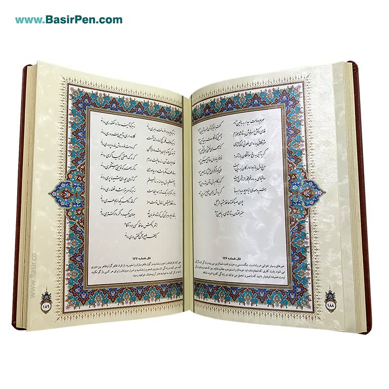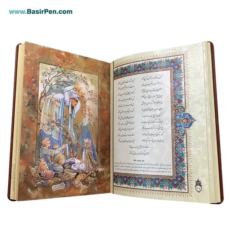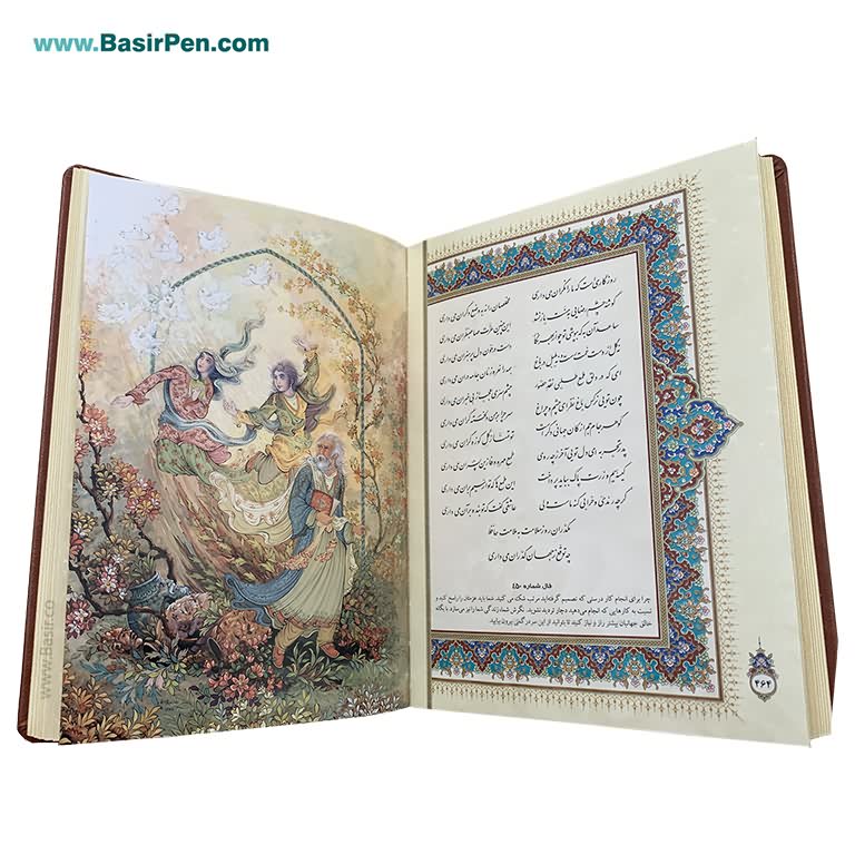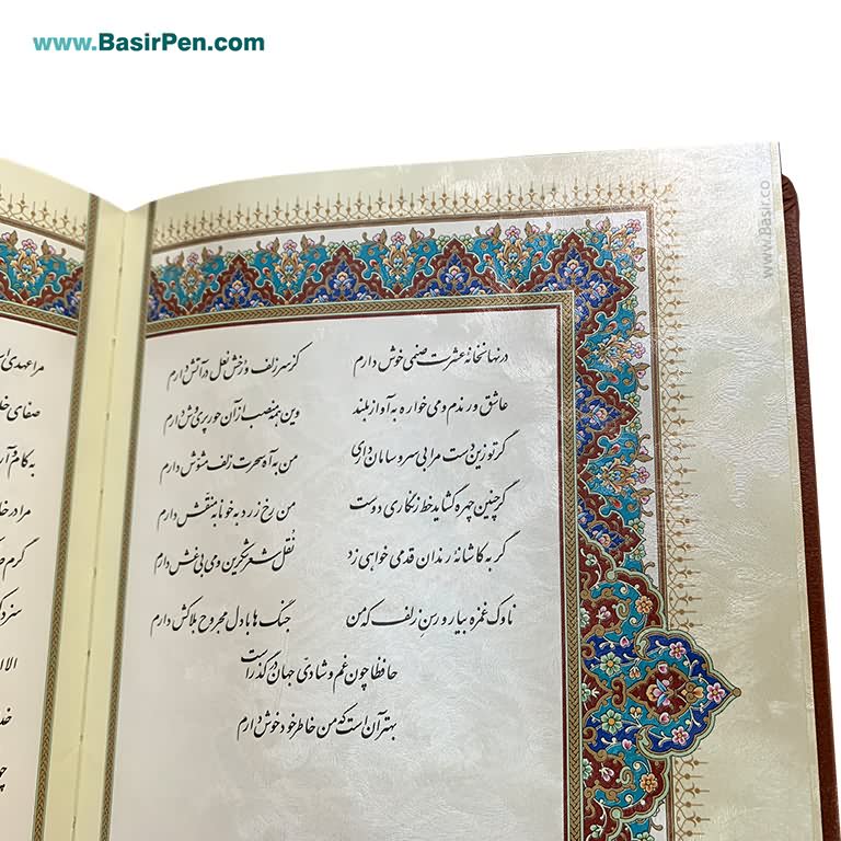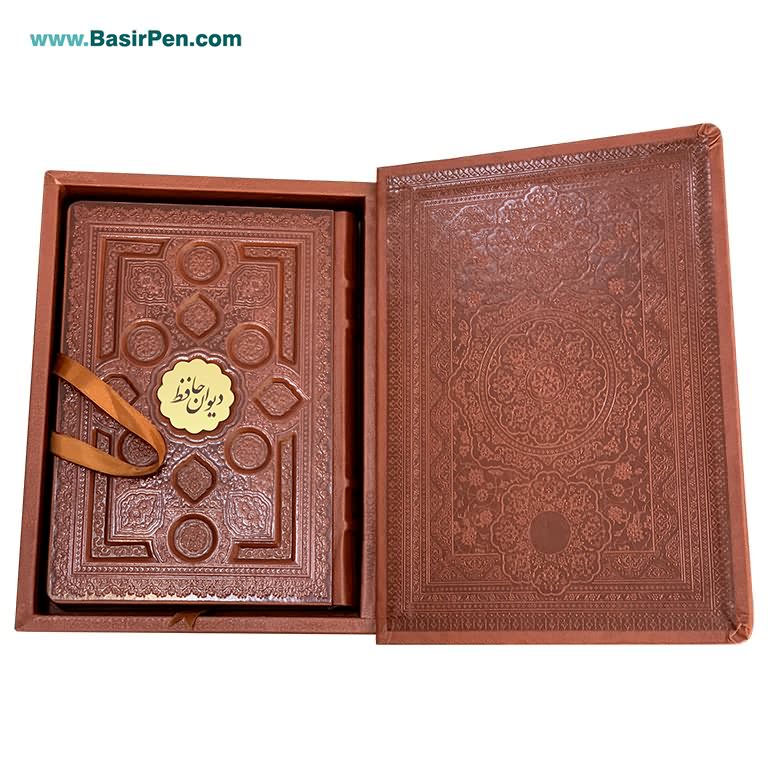 کتاب نفیس دیوان حافظ بصیر همراه با جلد و جعبه (قاب بازشو) چرمی طرح برجسته بسیار زیبا با کیفیت عالی و کاغذ گلاسه و چاپ تمام رنگی بسیار زیبا این کتاب به صورت تک و یا در تعداد بالا با تخفیف های بسیار عالی و بهترین قیمت توسط این مرکز (انتشارات نوین بصیر) توزیع می گردد.