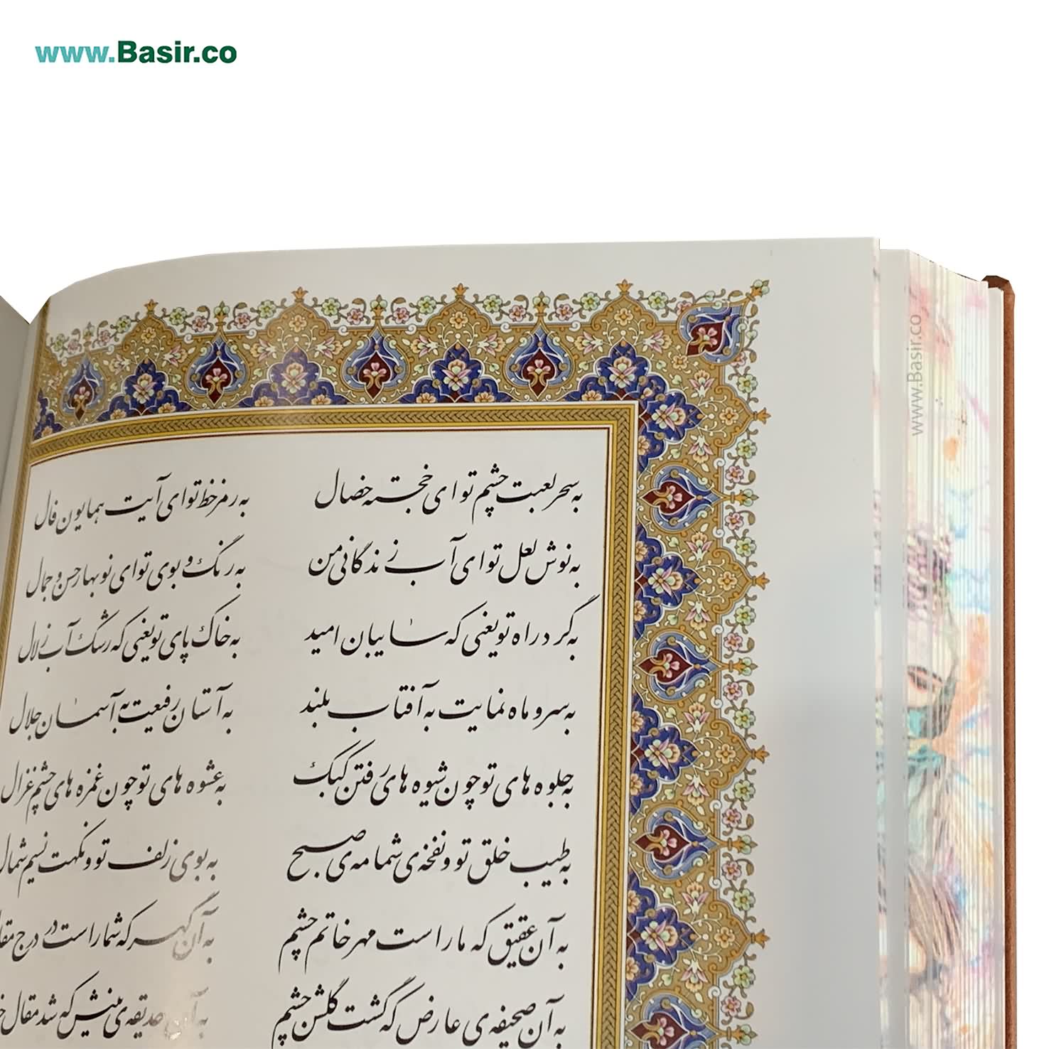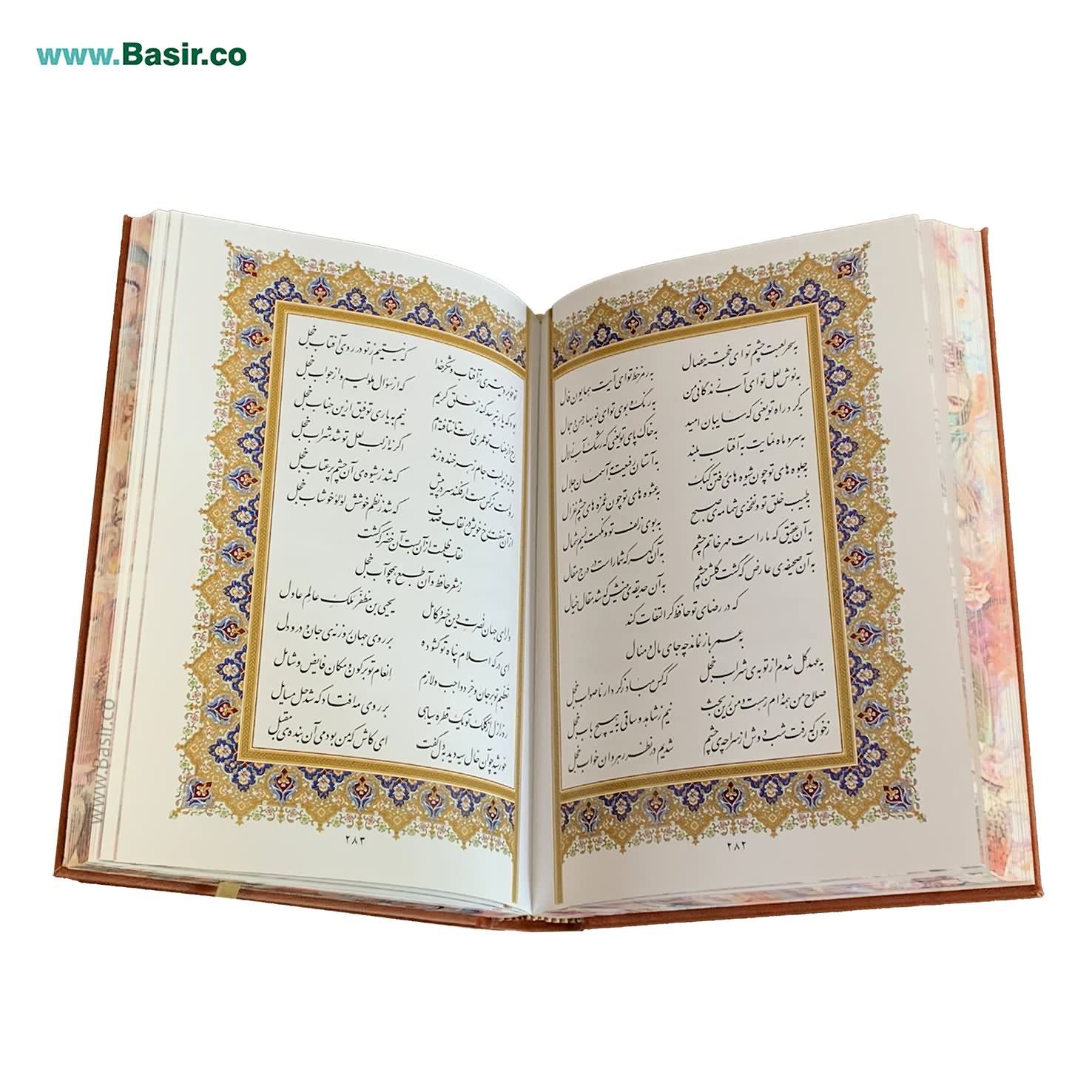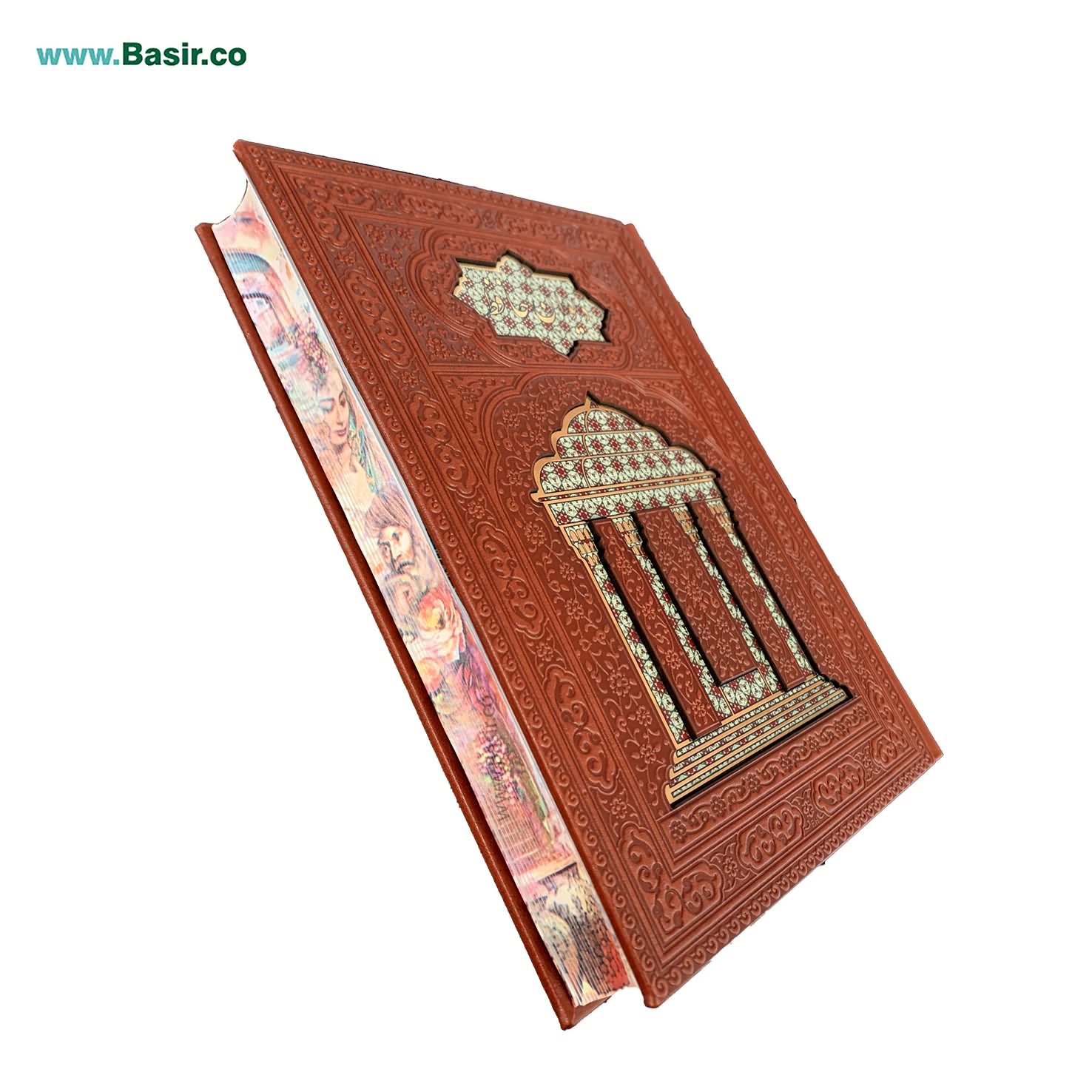 مجموعه نفیس و بسیار زیبا کتاب دیوان حافظ نفیس لبه تصویر همراه با جعبه لپتاپی چرمی و دو گلدان خاتم بسیار زیبا که با طرحی فوق العاده و چشم نواز تولید شده است. این مجموعه شامل یک کتاب نفیس دیوان حافظ در قطع وزیری با کاغذ گلاسه و تذهیب زیبا در داخل جعبه با دو گلدان بسیار زیبا خاتم در اطراف کتاب طراحی شده و هدیه ای بسیار نفیس و ماندگار به شمار می رود. این مجموعه توسط این مرکز (انتشارات نوین بصیر) با تخفیف های عالی در سراسر ایران توزیع می گردد.