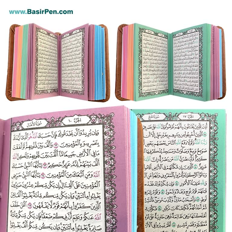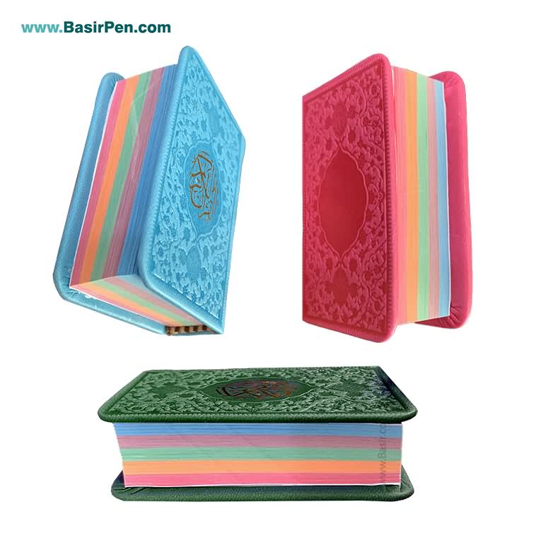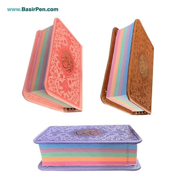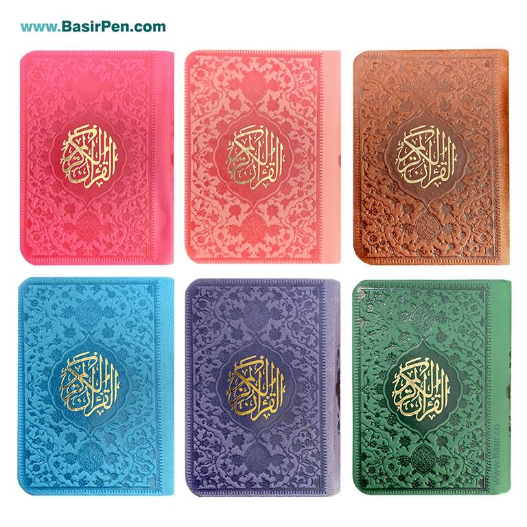 کتاب قرآن نفیس بسیار کوچک (قرآن لقمه ای) جلد رنگی بصیر بسیار زیبا و قابل حمل در رنگ ها مختلف با چاپ رنگی و کاغذ تحریر لبه رنگی خط عثمان طه 15سطری با استقبال بی نظیر تولید و توزیع به صورت تک و عمده در سراسر ایران با تخفیف های عالی توسط این مرکز، کارتن 176 عددی در رنگ های بسیار زیبا و مختلف با کیفیت چاپ عالی و تخفیف ویژه چاپ انتشارات نوین بصیر