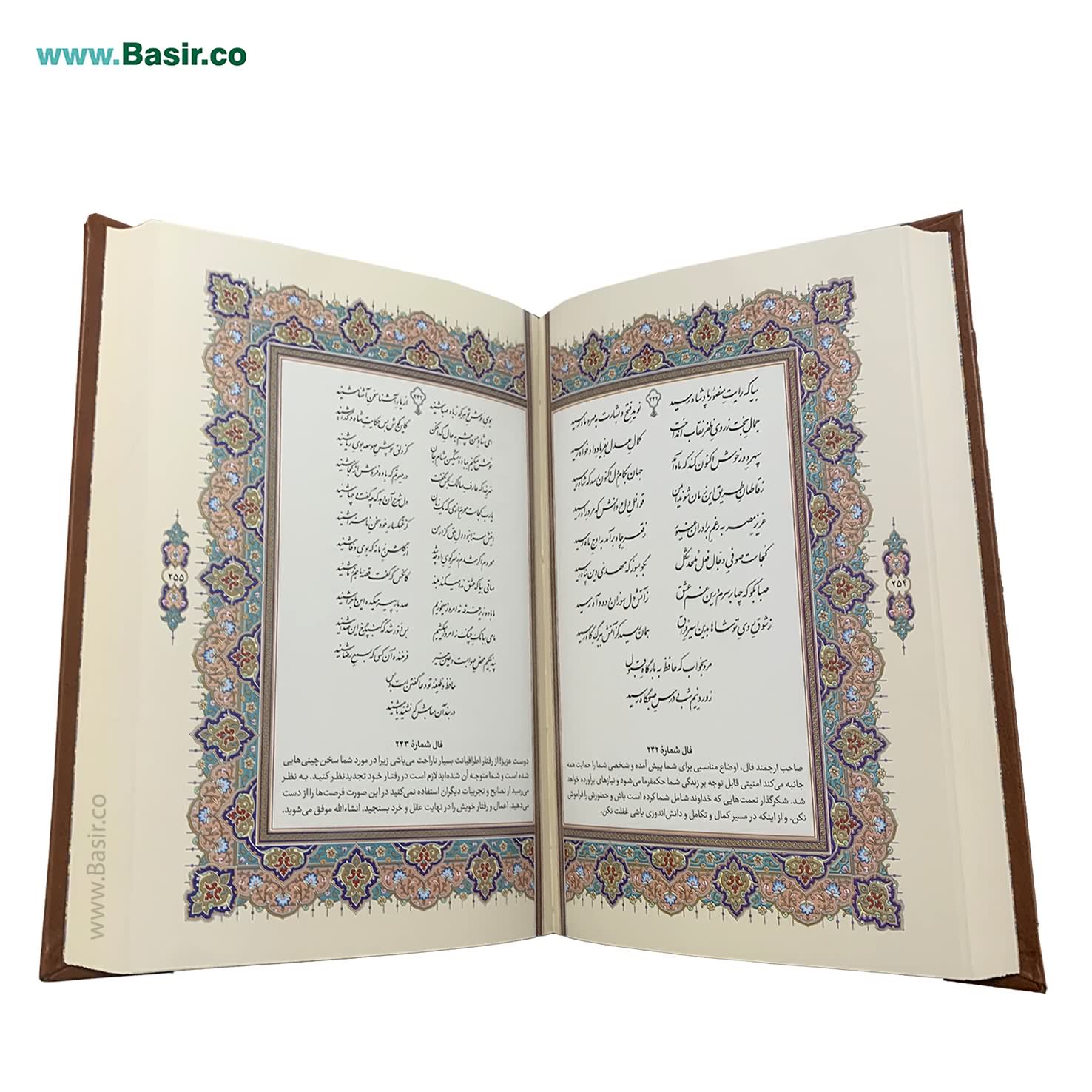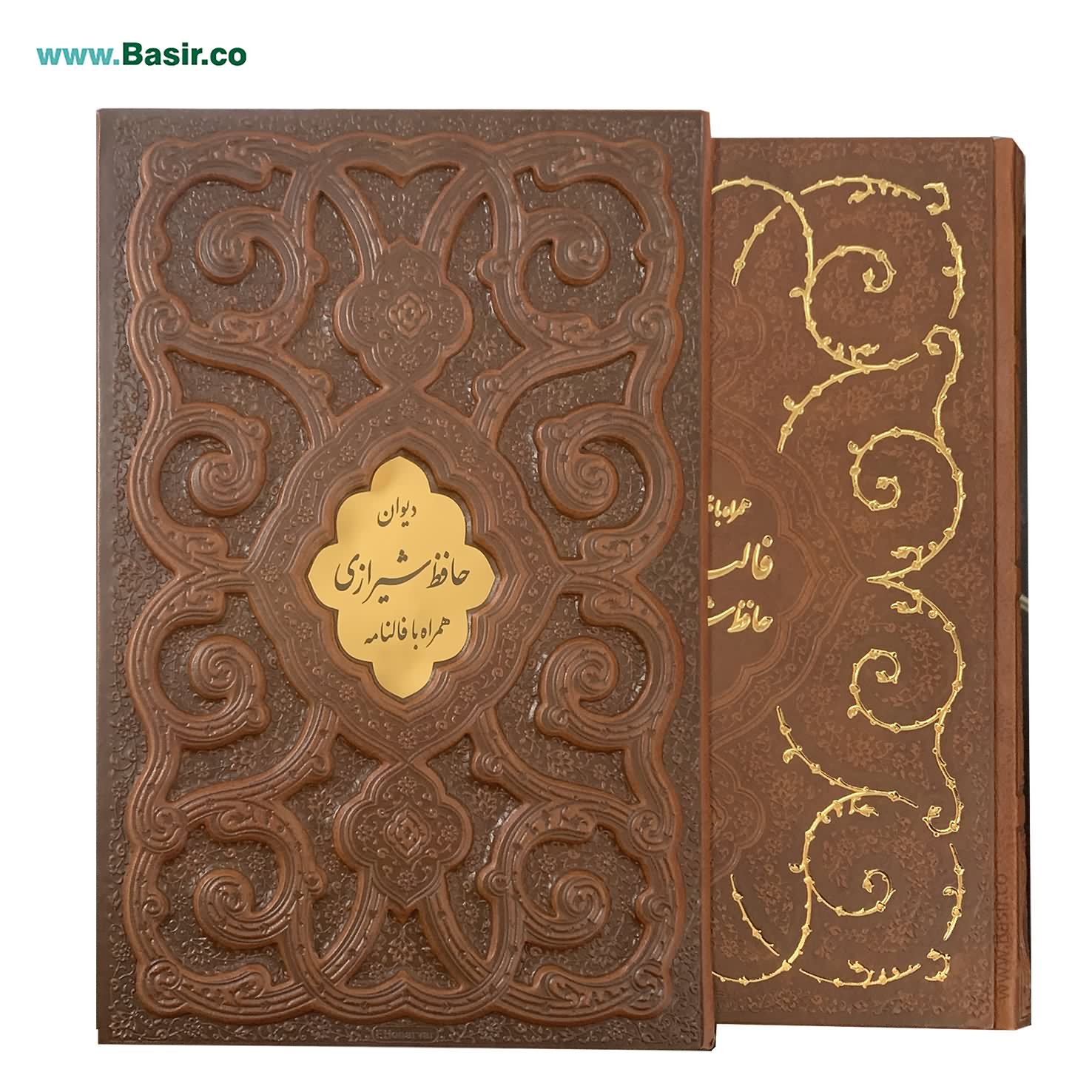 کتاب نفیس دیوان حافظ چرمی همراه با قاب کشویی طرح برجسته با کاغذگلاسه و خط نستعلیق زیبا با چاپ کاملا رنگی و تذهیب بسیار زیبا در قطع رقعی هدیهای نفیس و ماندگار برای تمامی افراد با قیمت مناسب که به صورت تک و یا در تعداد بالا با تخفیفهای ویژه توسط این موسسه در سراسر ایران توزیع می گردد.