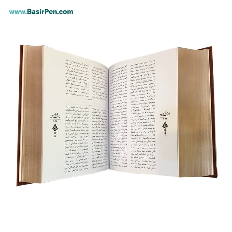 کتاب شاهنامه نفیس سروده ابوالقاسم فردوسی همراه با قاب کشویی جلد و قاب طرح چرم (ترمو) بر اساس نسخه مسکو در 1592 صفحه به صورت کامل
